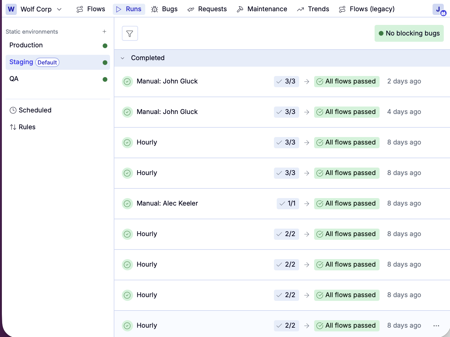 - Completed: All flows in the run have passed or been marked Do Not Investigate.