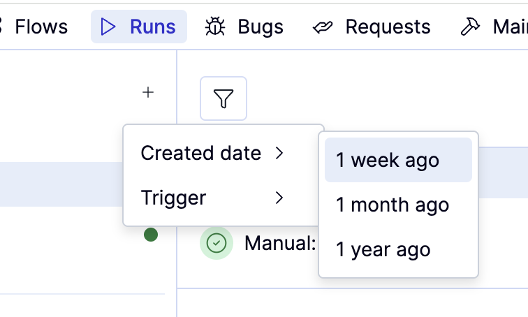 - Created date lets you filter runs by 1 week ago, 1 month ago, or 1 year ago.